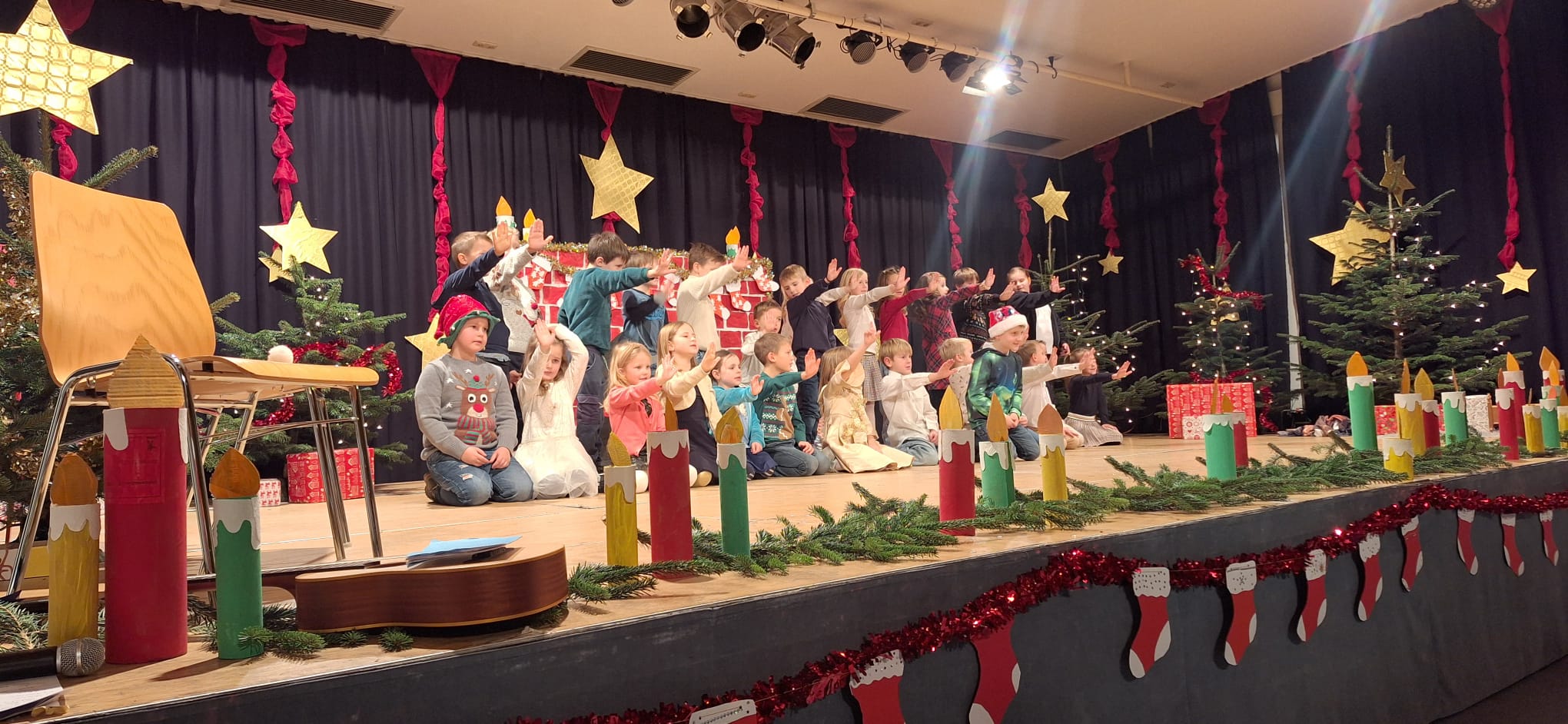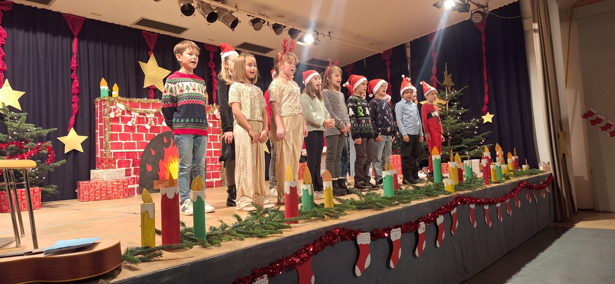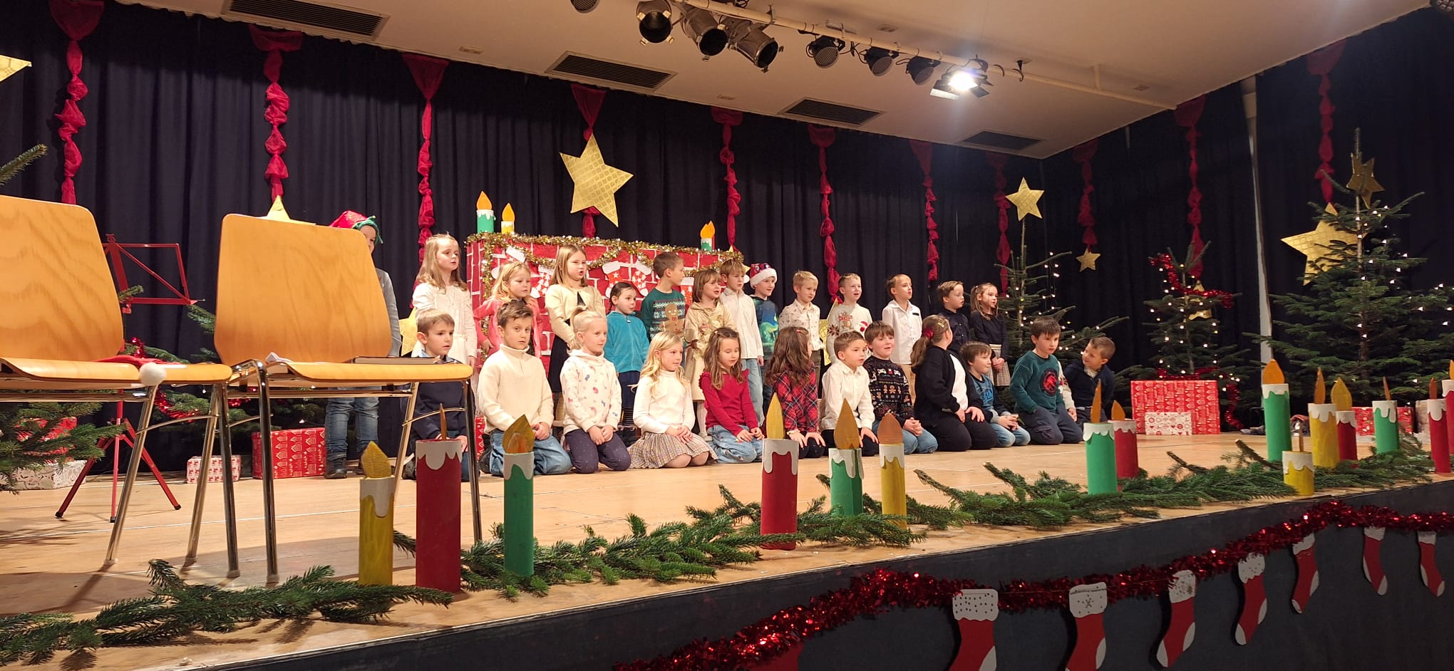 Kurz vor den Ferien feierten wir an unserer Schule eine wunderschöne Weihnachtsfeier. Die Schülerinnen und Schüler gestalteten ein abwechslungsreiches Programm mit Liedern, Gedichten und kleinen Theaterstücken und sorgten für festliche Stimmung.